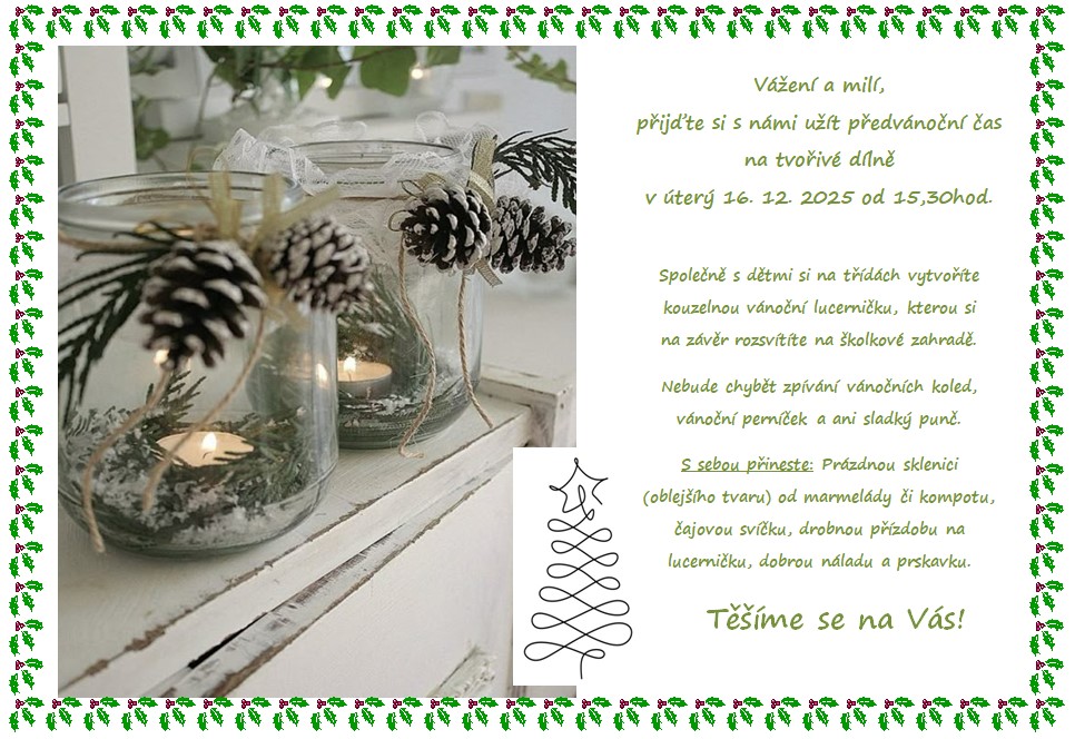 10. Prosinec 2025 Přednáška na téma "Školní zralost" pro rodiče předškolních dětí od 15.hod.